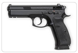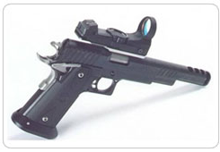 IPSC가 처음 시작되었을 때 사용된 주로 사용된 권총은 .45 ACP의 Colt 1911이었습니다. 수년에 걸쳐 총기 기술과 구경이 향상됨에 따라 경쟁자의 선택이 증가했습니다. 이제 IPSC에서 사용되는 총기의 다양한 모델과 제조업체가 있습니다. 1911년 스타일의 화기는 여전히 경쟁자들이 사용하는 장비의 큰 부분을 차지합니다.