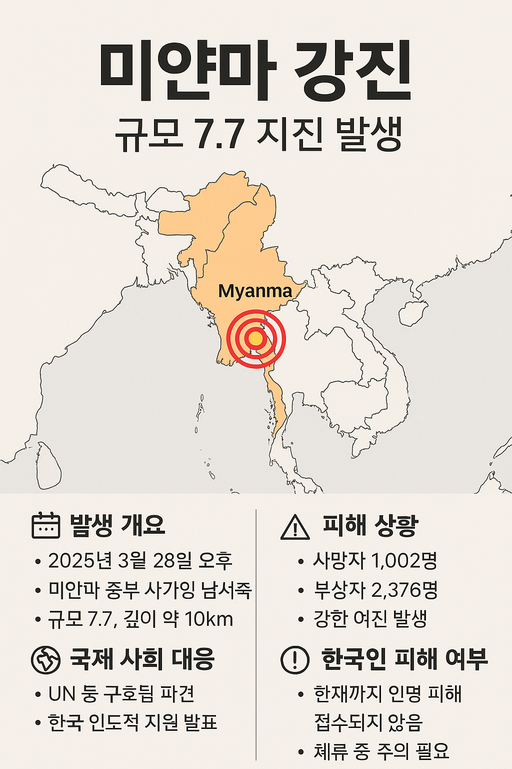 최근 미얀마에서 발생한 규모 7.7의 강진에 대해 자세히 알아보겠습니다.