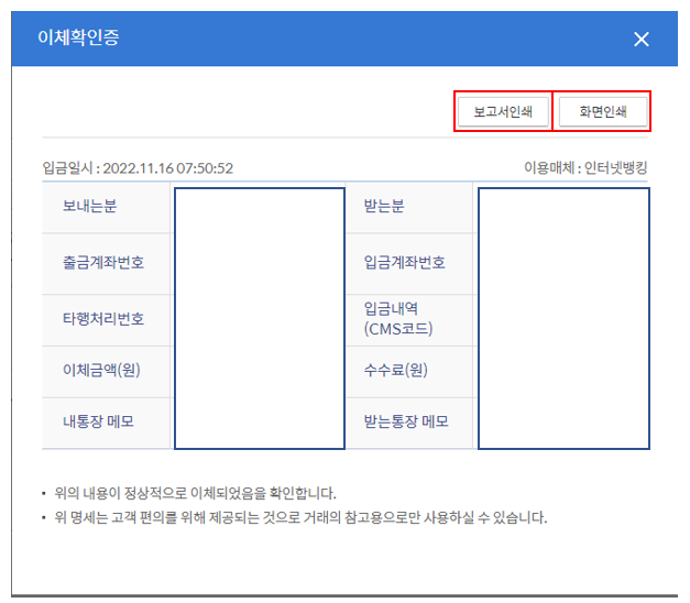4. 이체확인층 발급하기