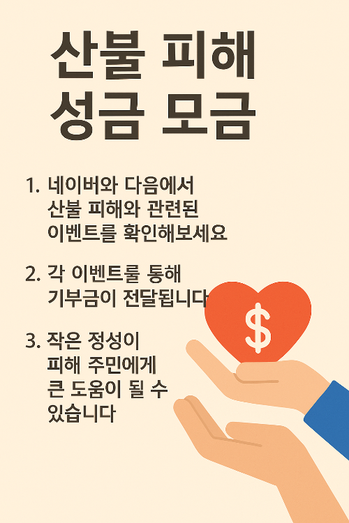 2025.03.29 - [분류 전체보기] - 산불 피해, 전화 한 통으로 도울 수 있어요 – ARS 기부 방법 안내